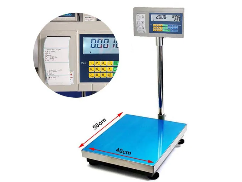 Tích hợp máy in nhiệt để in tem nhãn có mã vạch, tên hàng, trọng lượng, đơn giá và tổng tiền. Tem dán lên sản phẩm để quét mã tại quầy thanh toán. Cân kết nối với phần mềm quản lý bán hàng qua cổng RS232 hoặc USB.